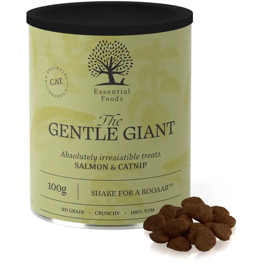 Essential Foods THE GENTLE GIANT er vores hyldest til kattens indre jæger. En sprød, uimodståelig godbid skabt til at forvandle hverdagens små øjeblikke til noget helt særligt. Når bøtten rystes, vækkes kattens instinkter med det samme – duft, smag og knas i perfekt harmoni.