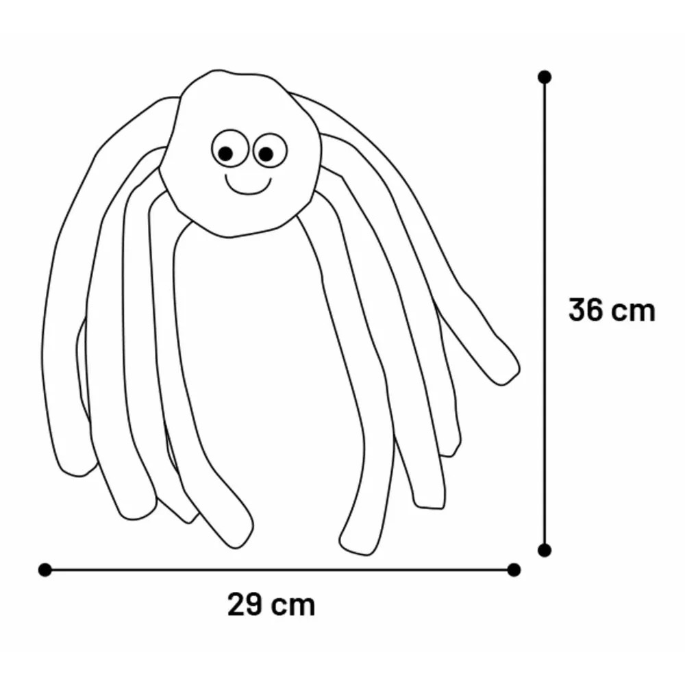 Legetøjet har en indbygget pivelyd, der holder hunden engageret og gør legen endnu mere spændende. Den bløde plys gør det behageligt at bide i, så Callie Spider både kan bruges til ruskeleg og som krammebamse.