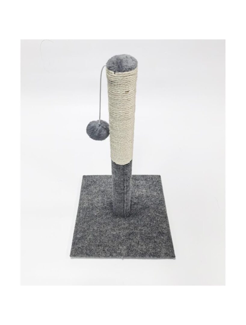 Pælen er omviklet med slidstærkt sisal, som giver en tilfredsstillende kradseoplevelse og opfordrer katten til at bruge sine kløer korrekt. Basen er stabil og blød, så pælen ikke vælter under leg. På toppen hænger en sjov plysbold i snor, der stimulerer kattens jagtinstinkt og holder den underholdt i timevis.
