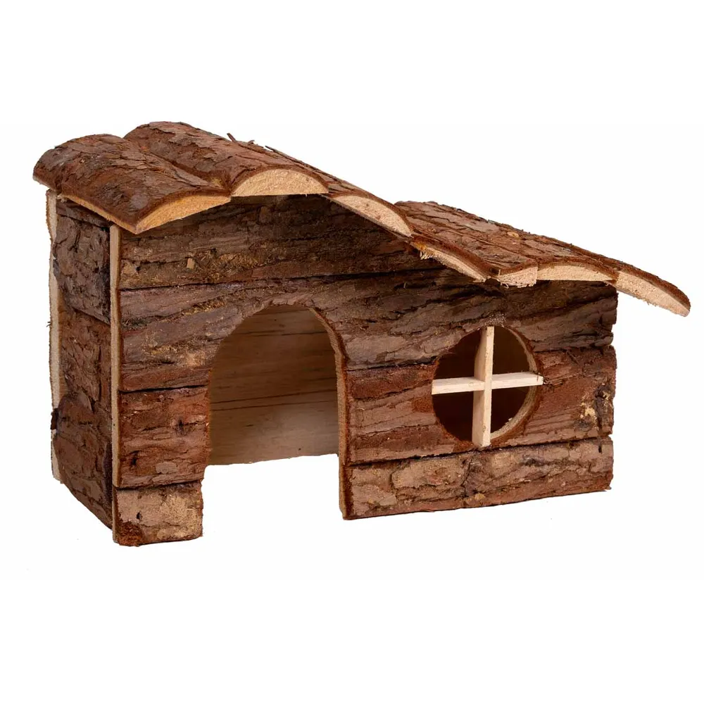 Ozami Træhus til Kaniner og Gnavere er designet med en rummelig åbning, som gør det nemt for dyret at gå ind og ud, samtidig med at det giver god ventilation. Det lille runde vindue lukker lys ind i huset og giver samtidig et dekorativt og naturligt udtryk, som passer perfekt ind i enhver burindretning.
